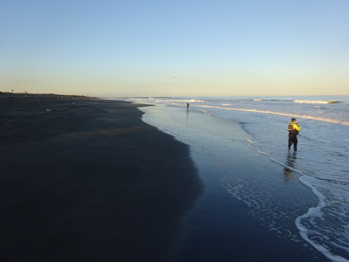 広大な砂浜が広がる九十九里浜では、投げ釣りでキスやイシモチ、ルアーフィッシングでヒラメやマゴチなどが釣れる。また網を潮に流して捕るヒラツメガニは九十九里浜の名物となっている。ただしサーフィンのメッカとして多くのサーファーも訪れるので、十分に離れて釣りをするなどトラブルのないように努めて欲しい。なお次のページでは九十九里浜のほぼ中央にある片貝港から南側の釣り場を紹介したい。