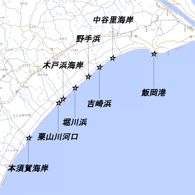 千葉県、「九十九里浜北部」の釣り場ポイントを紹介しています。
