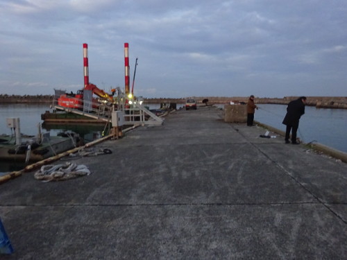夫婦ヶ鼻堤防とその手前の波止の間にイナが入り込んでいるようで、シーバス狙いのアングラーが多数いました。