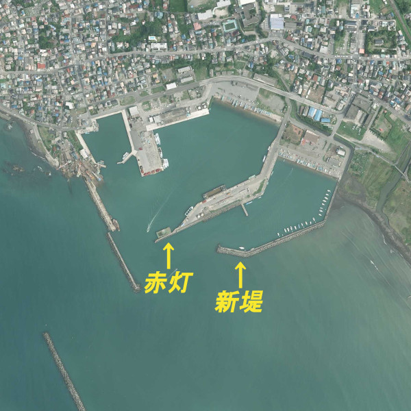 大きな港。中央にある赤灯波止の内側は車を横付けして釣りができ、アジ・サバ・イワシ・クロダイなどが釣れる。また新堤や西側にある波止外側のテトラからはクロダイ狙いが人気のようだ。ただしテトラは大きいので安全には十分に気をつけて欲しい。