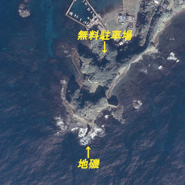 手前右手に地磯へ降りる道がある。