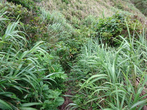 6月に訪れた際は藪が生い茂っていた。肌の露出を抑えた服装で行こう。