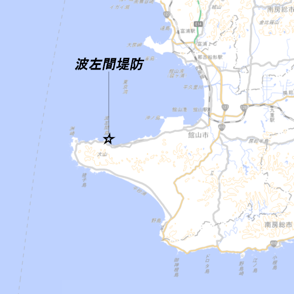 千葉県館山市、「波左間堤防」の釣り場ポイント情報です。