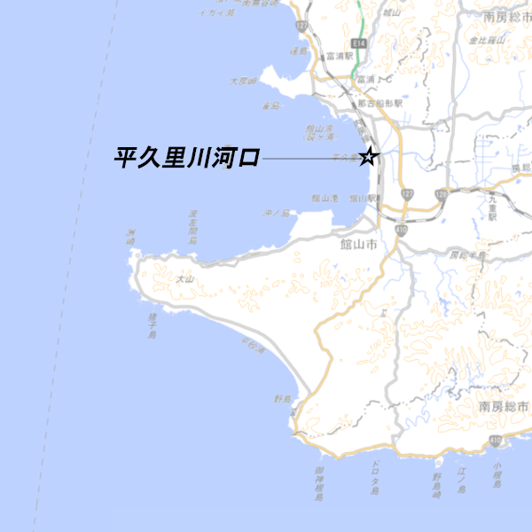 千葉県館山市、「平久里川河口」の釣り場ポイント情報です。