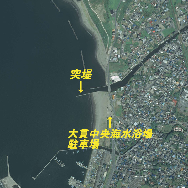 大貫中央海水浴場の北側を流れる、岩瀬川河口南岸の突堤がポイントになっている。投げ釣りでキスやイシモチ、ルアーフィッシングでシーバスやマゴチが釣れるようだ。