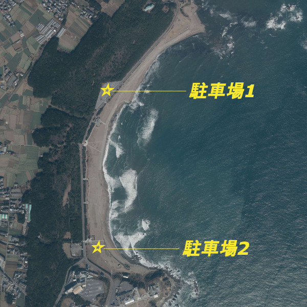 シモリ混じりの砂浜で、投げ釣りでキス・イシモチ・アイナメ、ルアーフィッシングでヒラメ・スズキなどが釣れる。海岸前には大きな無料駐車場も整備されている。