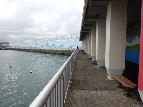 無料で利用できる2階建ての海釣り施設。釣り場には手すりも設置されているため、ファミリーフィッシングにも人気の釣り場だ。主なポイントは1階先端内向きと2階南向きで、1階先端内向きではサビキ釣りでアジ・サバ・イワシ、ちょい投げでキスが釣れる。2階南向きは加茂川の河口にあり、投げ釣りがメインでキス・イシモチ・クロダイ・スズキなどが釣れる。