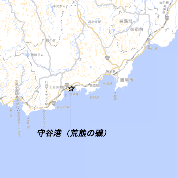 千葉県勝浦市、「守谷港(荒熊の磯)」の釣り場ポイント情報です。