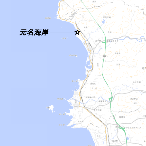千葉県安房郡鋸南町、「元名海岸」の釣り場ポイント情報です。