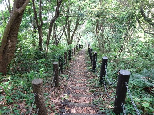 明神岬へは駐車場から第一展望台を目指して歩く。