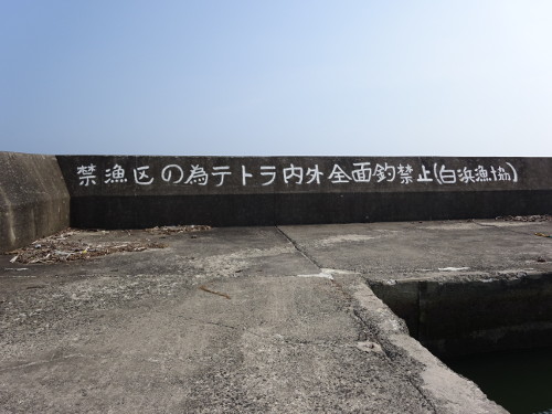 東波止のすぐ裏側にあるテトラに囲まれた波止は、禁漁区のため釣り禁止となっている。