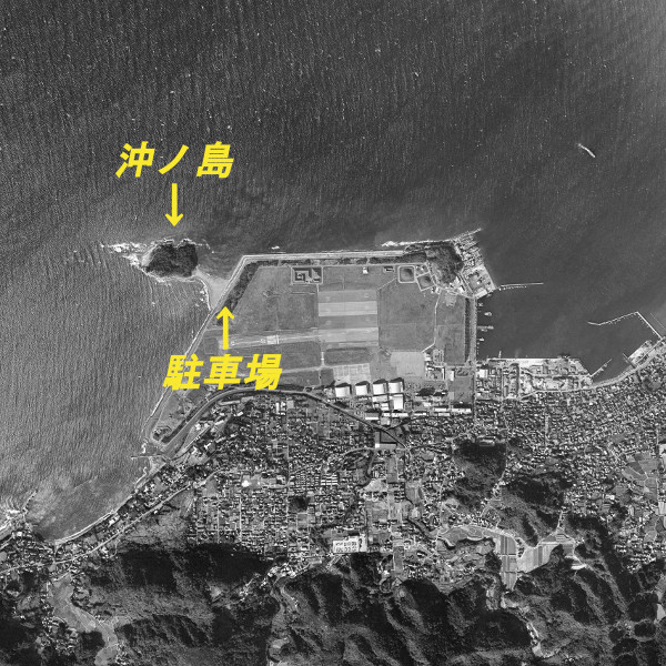 自衛隊基地西側にある陸続きの島。周辺の水深は浅いがクロダイやスズキが釣れる。沖ノ島へは東側の海岸沿いを通り行くことができる。