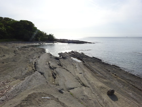 沖ノ島へは東側の海岸沿いを通り行くことができる。